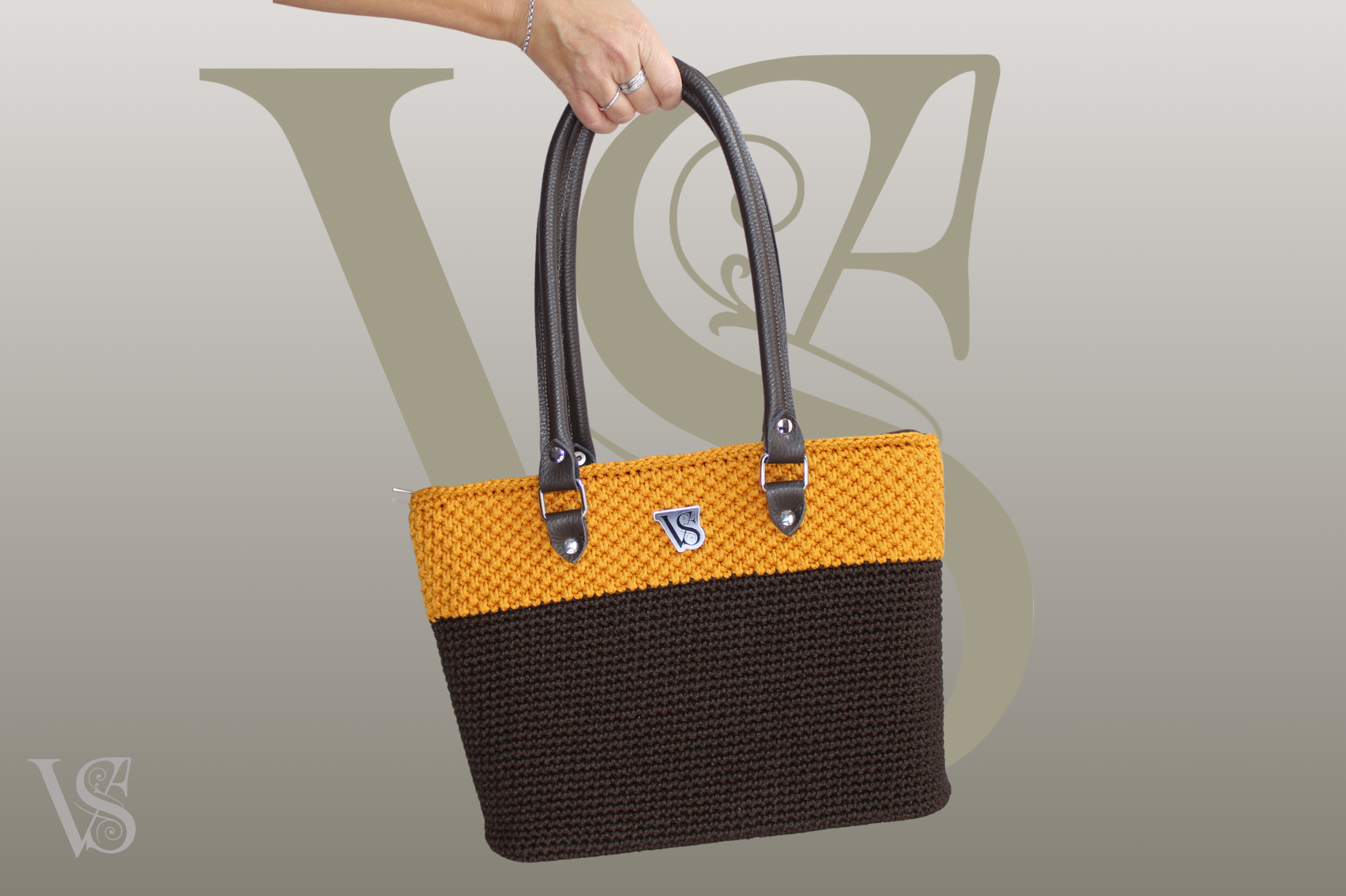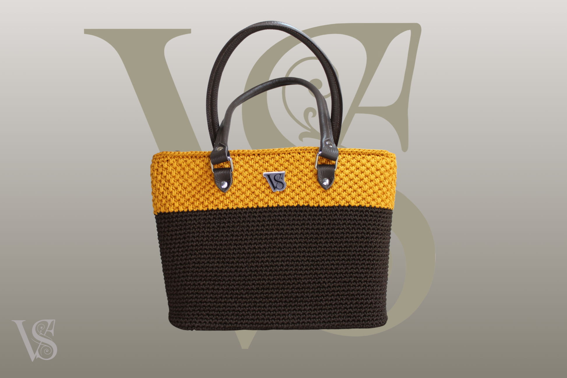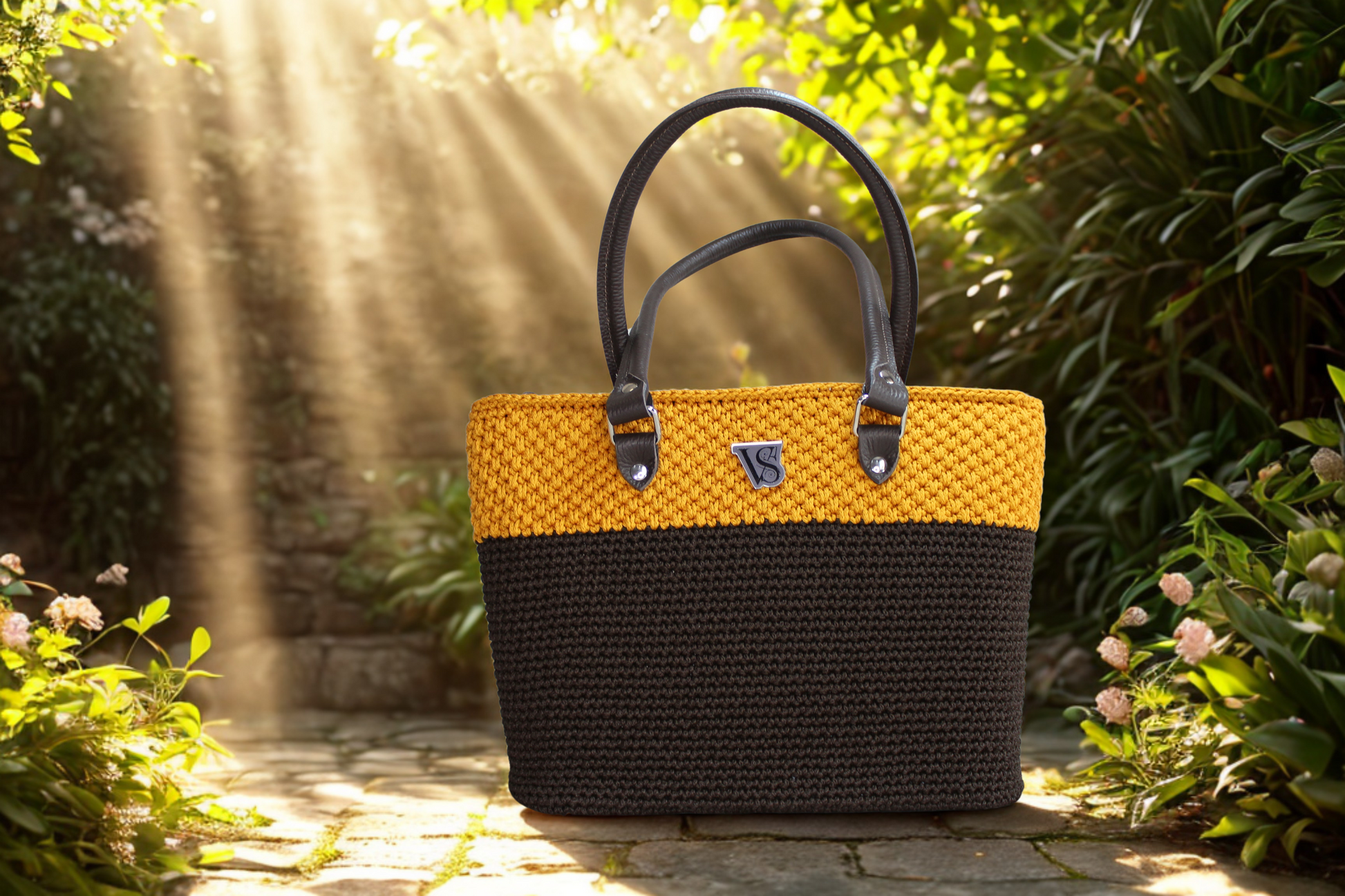Il design di Ardea è una celebrazione dell'armonia cromatica, dove il cordino color cioccolato si fonde con la vivacità del senape (ocra). La maggior parte della borsa è intessuta con una fitta e resistente maglia bassa nel tono cioccolato, che ne assicura la struttura; a contrasto, un terzo della superficie sfoggia l'intrigante punto canestro color ocra, aggiungendo una dimensione tattile e visiva di grande impatto. Questa composizione è magnificamente incorniciata dalla robusta pelle Testa di Moro, scelta per il fondo di 32x10 cm e per i manici, lunghi 65 cm per un trasporto comodo ed elegante a spalla o a braccio.