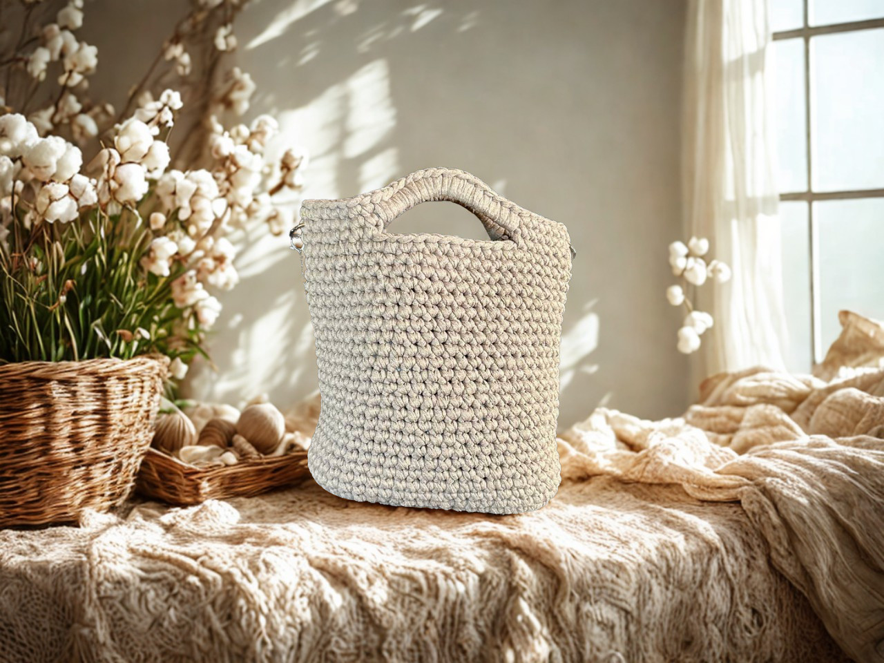 Scopri la perfetta combinazione tra praticità, artigianalità e rispetto per l’ambiente con la nostra Tote Bag Large, interamente realizzata a mano con cura e passione. Questo modello, lavorato a maglia bassa, presenta una trama compatta e resistente, ideale per accompagnarti nella quotidianità con uno stile autentico e naturale.