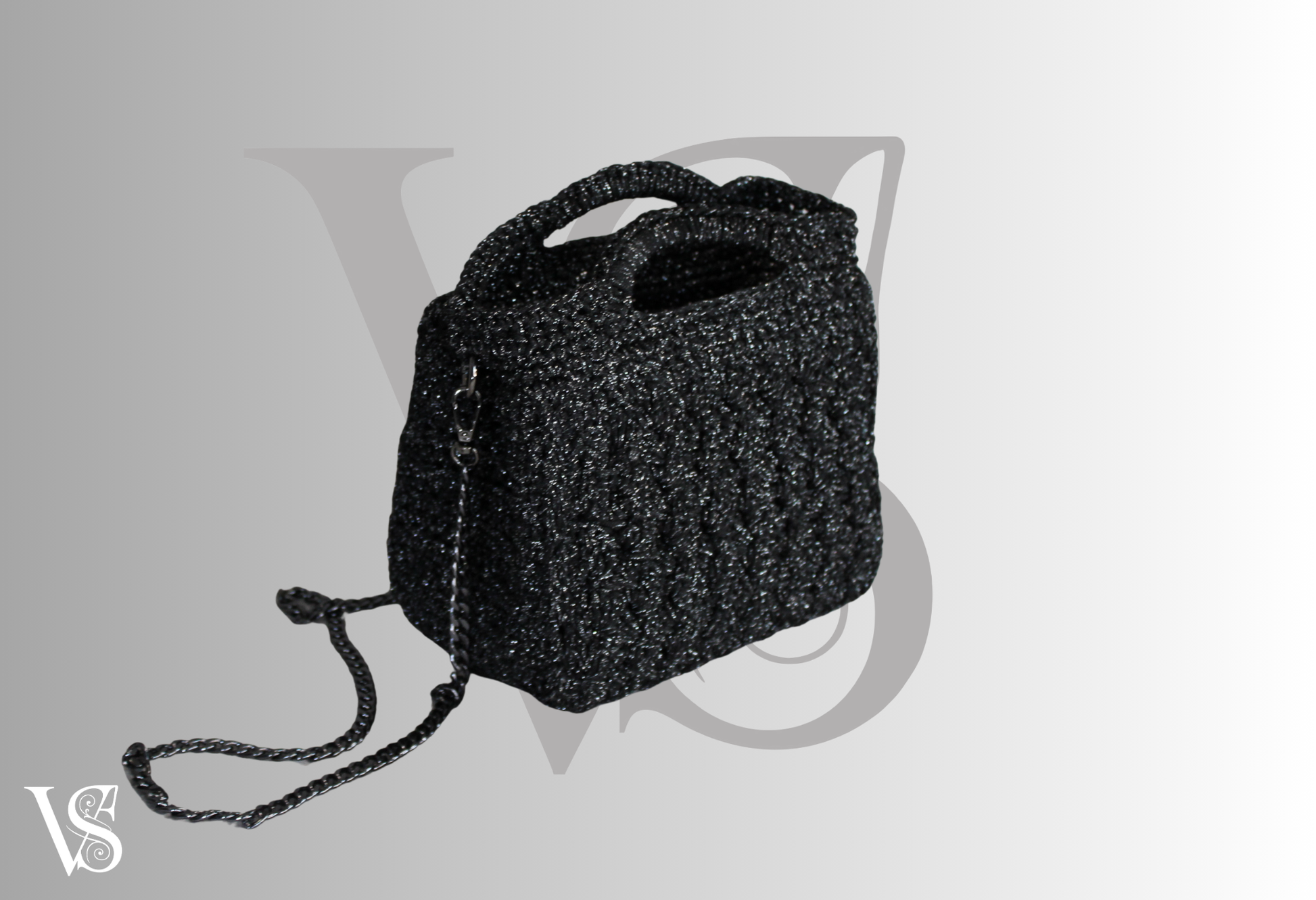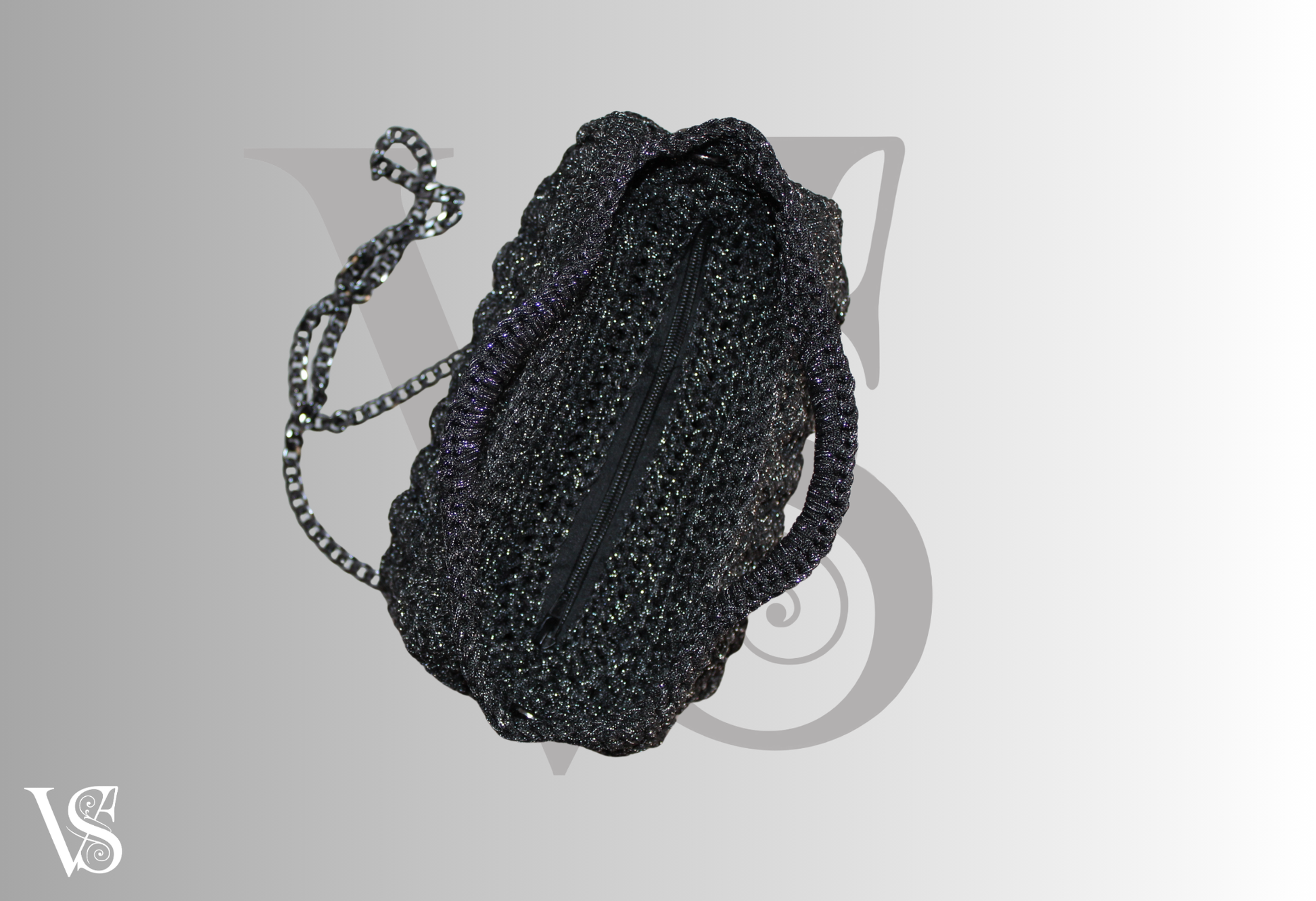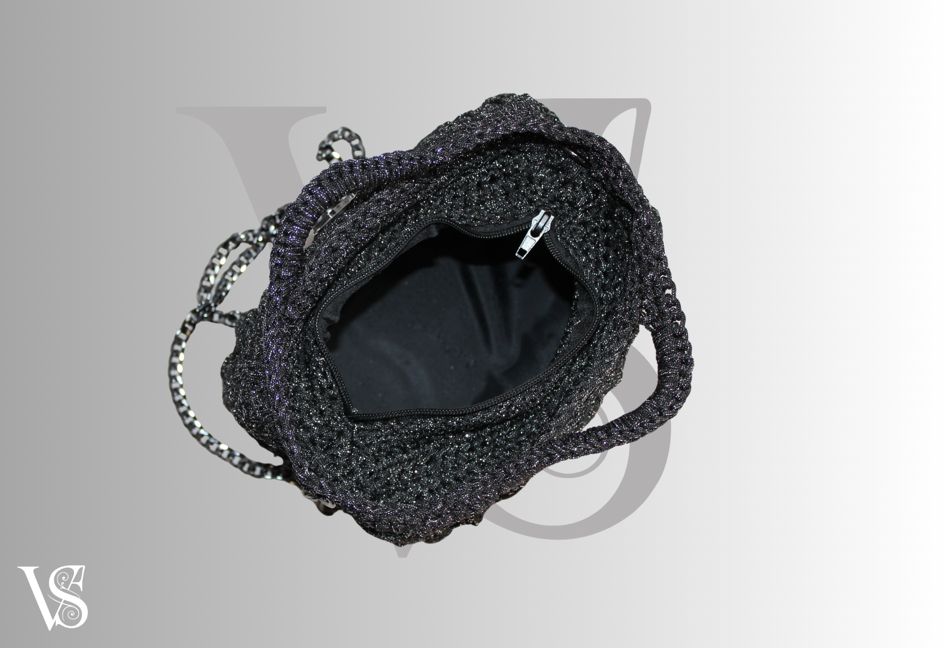 Borsa artigianale in cordino Swan Black Glitter – Eleganza luminosa lavorata a mano