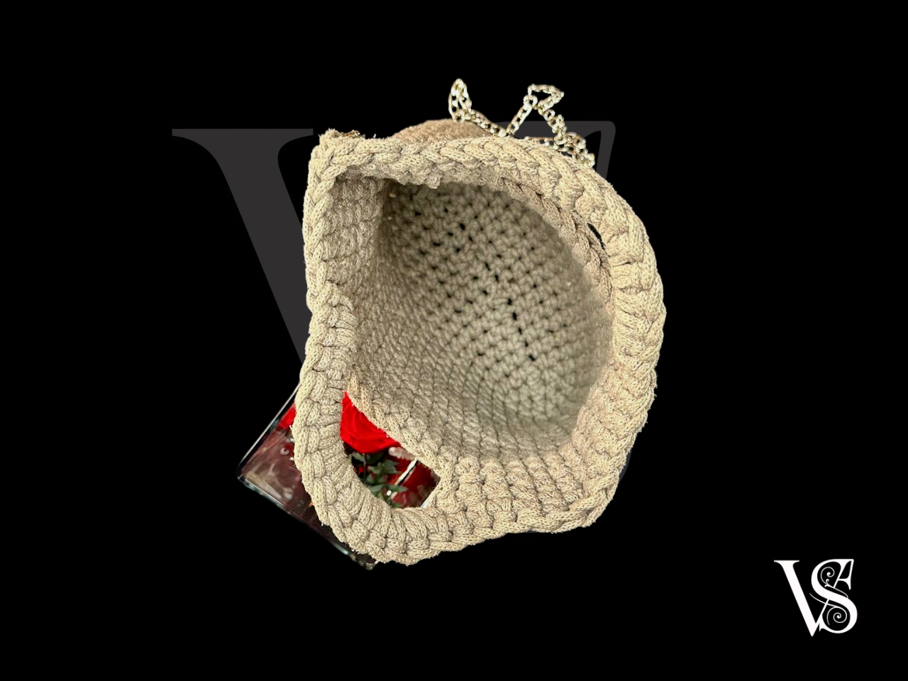 Le dimensioni (25 cm di larghezza, 28 cm di altezza, 8 cm di profondità) la rendono ideale per l’uso quotidiano, contenendo comodamente gli oggetti essenziali senza essere ingombrante. Completa il design una tracolla in metallo da 1 metro, elegante e resistente, perfetta per essere indossata a spalla o crossbody.